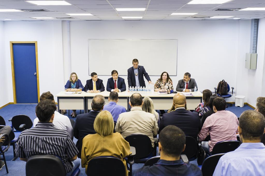 O Ministério Público do Estado do Rio de Janeiro (MPRJ) realizou, na manhã desta segunda-feira (04/03), na Cidade da Polícia, reunião para apresentar as mudanças em decorrência da reformulação das Centrais de Inquérito e das Promotorias de Investigação Penal (PIP) do MPRJ para os delegados de polícia de delegacias especializadas do Rio. Estiveram presentes os promotores de Justiça Alexandre Themístocles, Somaine Cerruti, Alexander Araujo, Alexandre Murilo Graça – responsáveis pelas quatro recém-criadas Promotorias de Justiça de Investigação Penal Especializadas -, e as promotoras de Justiça Elisa Fraga e Erika Puppim, respectivamente titular e designada para a 2ª Promotoria de Justiça de Investigação Penal Territorial da área Bangu e Campo Grande.