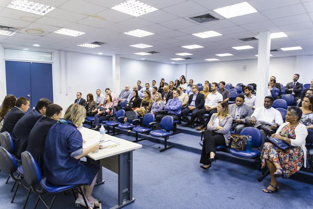 Os promotores de Justiça Alexandre Themístocles, Somaine Cerruti e Elisa Fraga explicaram como passa a funcionar a distribuição dos inquéritos, o que são os Núcleos de Investigação e como ocorre a divisão territorial das PIPs Territoriais – que se baseia nas Áreas Integradas de Segurança Pública (AISPs), que são a divisão territorial utilizada na política de segurança pública. Os delegados presentes tiraram suas dúvidas no decorrer da apresentação.