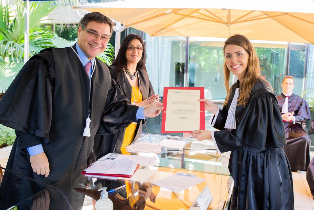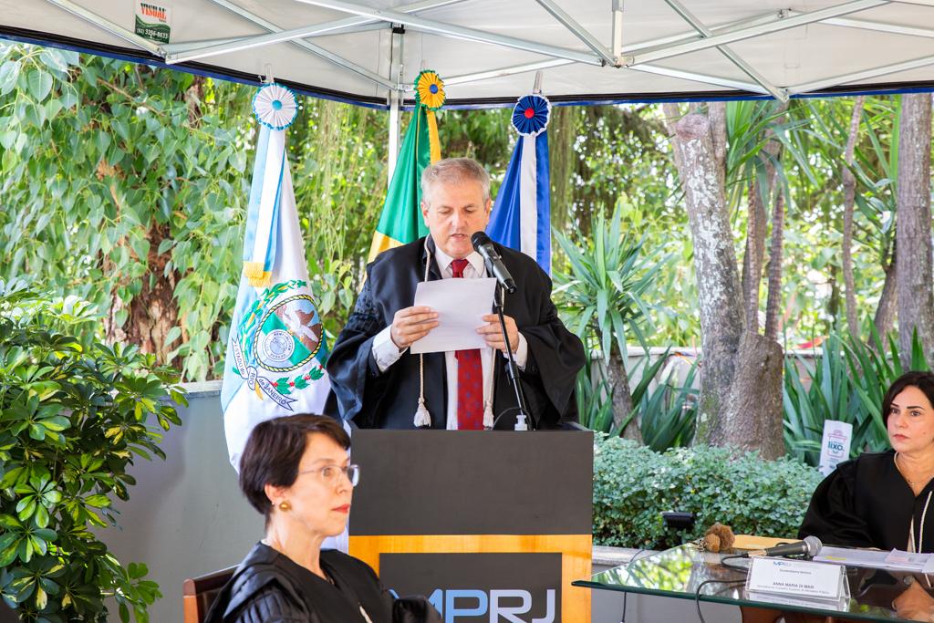 O chefe de gabinete do procurador-geral de Justiça, o promotor de Justiça Virgílio Panagiotis Stravidis, leu o Termo de Posse, que confirma o compromisso dos aprovados com a função de Promotor de Justiça e o ingresso como membros da instituição. Responsável pelo discurso de boas-vindas aos novos integrantes, a conselheira e procuradora de Justiça Viviane Tavares Henriques parabenizou os novos promotores e destacou em seu discurso que, em face da situação vivida no país e, em especial, no Rio de Janeiro, aconselharia os novos membros, como formadores de opinião e agentes de transformação, a atuarem sempre em favor da sociedade. “Depois da tempestade sempre vem a bonança. Temos a responsabilidade de estarmos prontos para enfrentar momentos difíceis como o atual, muito bem conduzido pelo Dr. Eduardo Gussem, visando o cumprimento dos pilares da nossa instituição, que são os de zelar pelo respeito ao direito alheio, pela ética e pela honestidade. Não se deixem abater; sigam adiante, na esperança de dias melhores”, declarou.
