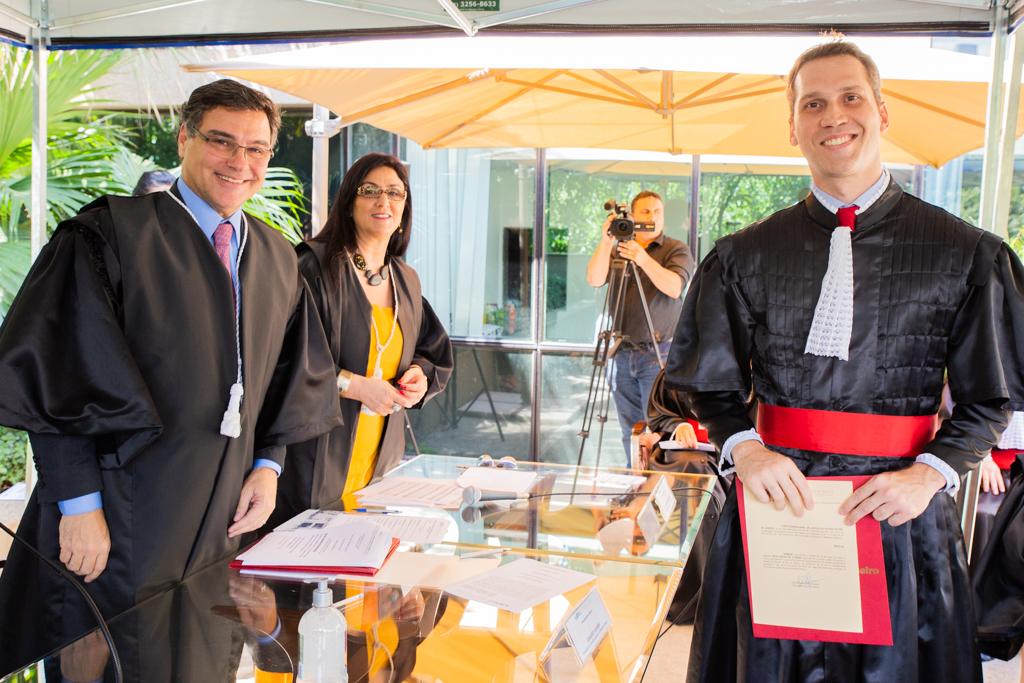 O Ministério Público do Estado do Rio de Janeiro (MPRJ), por meio do Conselho Superior, empossou, nesta quinta-feira (19/03), Décio Viegas de Oliveira, Luisa Thury Mosqueira de Azevedo e Marcelo Abramovitch, aprovados no XXXV Concurso para Ingresso na Classe Inicial da carreira. O procurador-geral de Justiça, Eduardo Gussem, presidiu a cerimônia de posse dos novos promotores de Justiça, realizada no espaço externo do 4º andar do edifício-sede.