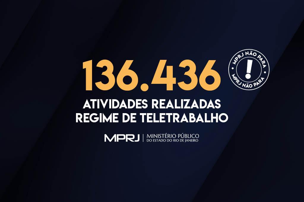 O Ministério Público do Estado do Rio de Janeiro (MPRJ), seguindo as deliberações do gabinete de crise criado para combater os efeitos do novo coronavírus (COVID-19) no Estado, implementou medidas restritivas de circulação interna e externa entre os seus servidores, entre elas o Regime Diferenciado de Teletrabalho e a suspensão da participação presencial de funcionários em eventos externos que envolvam aglomeração de público. As ações, porém, não diminuíram os esforços da instituição para atender às demandas da população fluminense. De acordo com dados coletados pela Coordenadoria de Análises, Diagnósticos e Geoprocessamento (CADG/MPRJ), de 16/03, data em que entrou em vigor o regime de teletrabalho, até o último dia 01/04, foram realizadas, pelas diferentes estruturas ministeriais, 136.436 atividades, uma média de 8.025 atividades por dia.