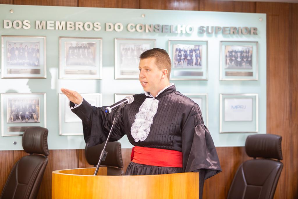 Marcos Vinicius Krause Bierhalz leu o Termo de Compromisso perante os presentes, destacou o que espera da nova etapa de sua carreira. “É uma honra entrar para a instituição e espero servir à população fluminense da melhor maneira possível, ainda mais diante de um quadro social tão delicado como o atual, em que a atuação do MPRJ é importante demais no auxílio à população”, disse.