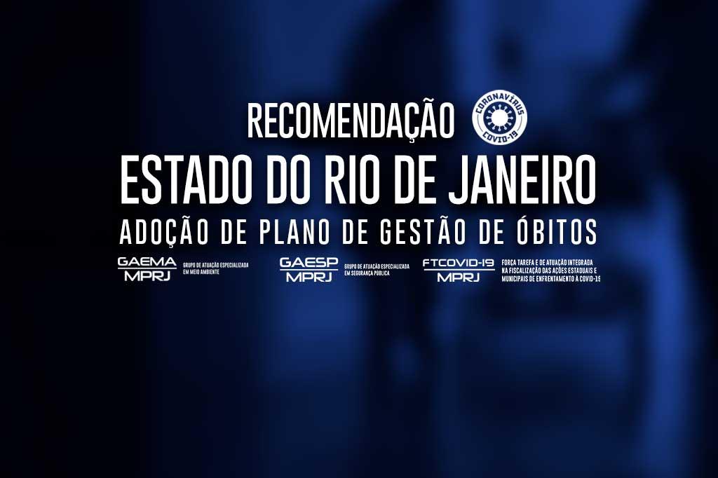 O Ministério Público do Estado do Rio de Janeiro (MPRJ), por meio da Força Tarefa de Atuação Integrada na Fiscalização das Ações Estaduais e Municipais de Enfrentamento à Covid-19/MPRJ (FTCOVID-19/MPRJ), do Grupo de Atuação Especializada em Segurança Pública (GAESP/MPRJ), do Grupo de Atuação Especializada em Meio Ambiente (GAEMA/MPRJ) e da 1ª Promotoria de Justiça de Tutela Coletiva da Cidadania da Capital, expediu, neste sábado (09/05), Recomendação ao Estado do Rio de Janeiro, em nome do governador Wilson Witzel, para que seja adotado um Plano de Gestão de Óbitos na esfera estadual, em razão do aumento expressivo do número de mortes.