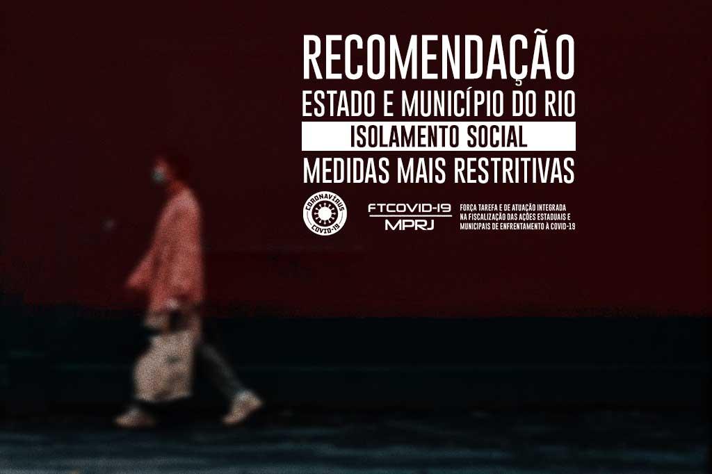O MPRJ recomenda que seja editado um decreto, para vigorar pelo prazo de 15 dias (renováveis), com base em estudos técnicos elaborados pelo Estado e Município, bem como os da Fiocruz, UFRJ, UFF, da Sociedade de Infectologia do Rio de Janeiro, do Conselho Nacional de Saúde entre outros, levando em consideração a análise de dados e peculiaridades econômicas, sociais, geográficas, políticas e culturais, respectivamente, do Estado e do Município. Segundo o MPRJ, essas medidas devem contemplar diretrizes como a proibição de atividade não essencial, como acesso de pessoas a espaços de lazer públicos como calçadões, praças, funcionamento de comércios não essenciais, além da proibição de circulação de veículos nas ruas, nas áreas mais críticas definidas pelo próprio Governador e Prefeito.