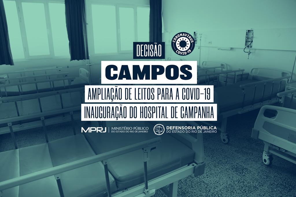 O Ministério Público do Estado do Rio de Janeiro (MPRJ), por meio da 3ª Promotoria de Justiça de Tutela Coletiva de Campos dos Goytacazes, e a Defensoria Pública do Estado do Rio obtiveram, nesta terça-feira (19/05), junto à 4ª Vara Cível de Campos, decisão favorável à Ação Civil Pública conjunta ajuizada para que o Estado do Rio, o Município de Campos e a organização social Instituto de Atenção Básica e Avançada à Saúde (IABAS/RJ), no prazo máximo de 10 dias, ampliem o número de leitos para o tratamento da pandemia do novo coronavírus (Covid-19) no município do Norte Fluminense e instalem o Hospital de Campanha previsto para o tratamento exclusivo de pacientes infectados.