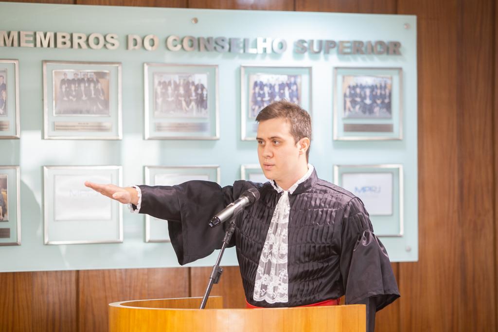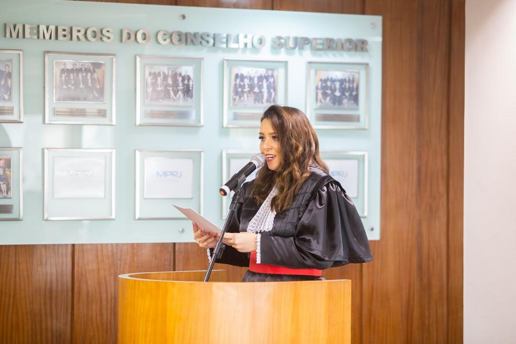 Escolhido para ler o termo de compromisso, Arthur Soares Silva destacou a responsabilidade e a honra de ingressar na instituição que serve à população fluminense. Fernanda Vieira Alteirado agradeceu ao PGJ e ao Conselho Superior o empenho na realização das várias cerimônias de posse, e salientou em seu discurso que ela e seus colegas ingressam na instituição em um momento histórico decisivo, em que o MPRJ se destaca pelo uso de novas tecnologias na garantia dos direitos fundamentais da sociedade. “O MPRJ se esforça, mesmo em meio a uma crise sem precedentes, na constante fiscalização das ações governamentais, punindo os que desviam recursos e sangram os cofres públicos, e auxiliando diretamente na promoção do cuidado com os menos favorecidos, duramente atingidos pela pandemia”, disse.