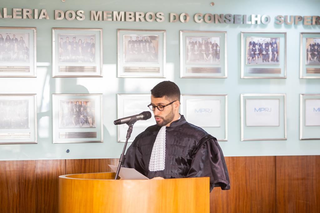 O promotor de Justiça substituto Lucas Gagliano discursou em nome dos empossados, agradecendo pelo apoio da família e dos amigos ao longo da vida e durante todo período dedicado a ingressar na instituição. Ele destacou o desejo, agora compromisso, de defender os interesses da sociedade. “Há muito a ser construído, mas se voltarmos nossos olhos ao passado veremos os avanços obtidos na última década, cujo mérito não tenho dúvidas em atribuir ao Ministério Público e à sua atuação ininterrupta na defesa dos diretos da sociedade e na promoção da cidadania. Nosso mister é voltado para todos, para resolução dos problemas graves da sociedade”, disse Lucas, que concluiu: “É, foi e será uma atuação para zelar sempre pelo bem comum, para dar voz para quem não tem e preservar para que ninguém esteja nem acima nem abaixo da lei. Zelaremos para que todos estejam abarcados pela ordem jurídica”.