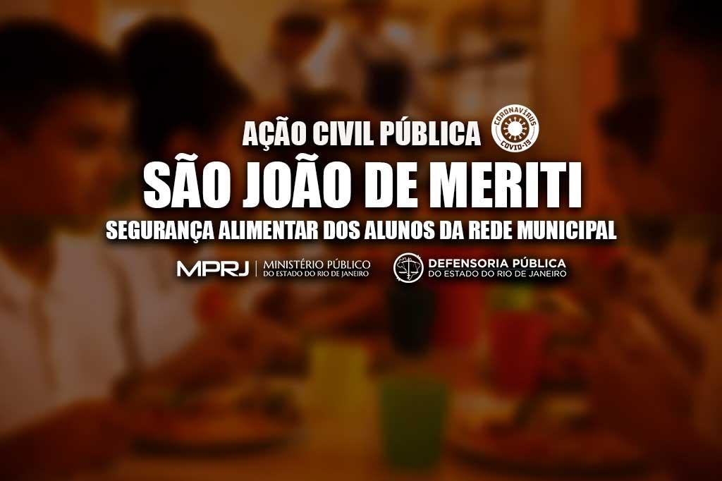 O Ministério Público do Estado do Rio de Janeiro (MPRJ), por meio da Promotoria de Justiça de Tutela Coletiva de Proteção à Educação - Núcleo Duque de Caxias, e a Defensoria Pública do Estado do Rio, ajuizaram, no último dia 03/06, Ação Civil Pública conjunta, em face do Município de São João de Meriti, para garantir a segurança alimentar dos alunos da rede municipal de ensino. De acordo com a ação, a prefeitura deverá assegurar o direito à alimentação de todos os alunos da rede pública que tiveram as aulas suspensas em virtude da pandemia do novo coronavírus (Covid-19), a partir da distribuição de gêneros alimentícios correspondentes ao número de refeições normalmente realizadas na escola pelos estudantes.
