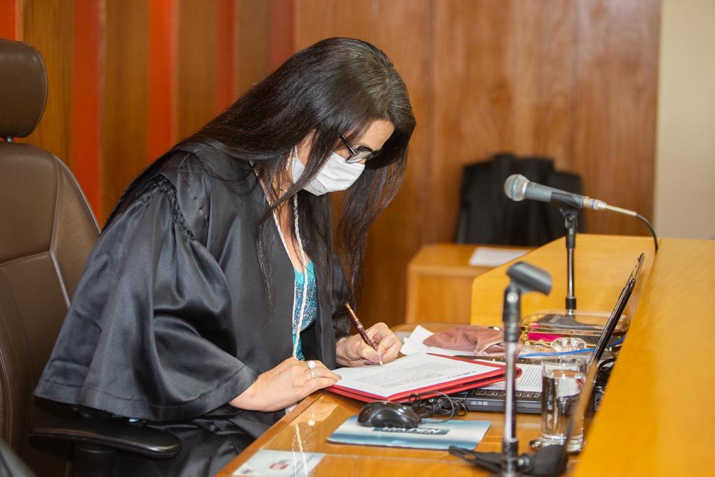 A secretária do Órgão Especial, procuradora Patrícia Mothé Glioche Bezé, deu prosseguimento à cerimônia com a leitura do Termo de Posse. Luciana Sapha teve como madrinha, a procuradora e decana do Ministério Público estadual, Maria Cristina Palhares dos Anjos Tellechea, subprocuradora-geral de Planejamento, que saudou a corregedora-geral reeleita. “No momento em que fomos instados, em razão da pandemia, a nos reinventarmos, vossa excelência, no cargo de corregedora-geral do Ministério Público, uma instituição que se agiganta, não temeu um novo desafio. Somos gratos por sua generosidade e temos confiança no exercício desse novo mandato. Neste momento que se descortina, a instituição precisa de equilíbrio, orientação e visão solidária. O MPRJ tem que exercer todo o seu mister, mas tem que fazê-lo com temperança. O cargo de corregedor muitas vezes incompreendido, vai permitir que nos novos tempos que se avizinham, possamos recuperar tudo que se misturou e se perdeu nos últimos meses, e partir para novos desafios, buscando uma instituição mais resolutiva e que se prepara para atender a sociedade, que um dia nós optamos e acreditamos que pudéssemos defender”, disse Maria Cristina Tellechea.