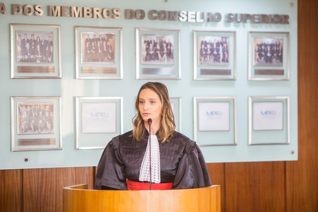 No discurso que fez representando os dois empossados, a promotora de Justiça substituta Amanda Teitel lembrou de sua passagem pelo MPRJ como estagiária. “Em 2014, eu entrei no auditório do edifício-sede para tomar posse como estagiária e, anos depois, entrei no mesmo local para fazer as provas do concurso que me trouxeram até aqui hoje. O MPRJ conta com um Laboratório de Inovação, uma plataforma digital que permite georreferenciar ocorrências (MP em Mapas), e projetos como o ‘Quero uma Família’, inédito no Brasil, e o ‘Observatório SUAS’, que o tornam protagonista na luta pela Justiça em nosso país. Somos a salvaguarda dos ideais democráticos e não temos tempo a perder na defesa dos muitos que dependem de nós”, afirmou Amanda, cujo irmão, William Teitel, tomou posse como promotor de Justiça substituto no último dia 13/02, aprovado no mesmo concurso.