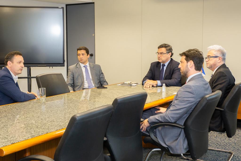 O procurador-geral de Justiça, Eduardo Gussem, acompanhado pelo coordenador do Grupo de Atuação Especializada em Sonegação Fiscal (GAESF/MPRJ), promotor de Justiça Vinicius Cavalleiro, recebeu nesta terça-feira (29/09) a visita do procurador-geral do Estado, Bruno Dubeux, do controlador-geral do Estado, Ricardo Soares, e do assessor do Gabinete do Governador, Rafael Menezes.
