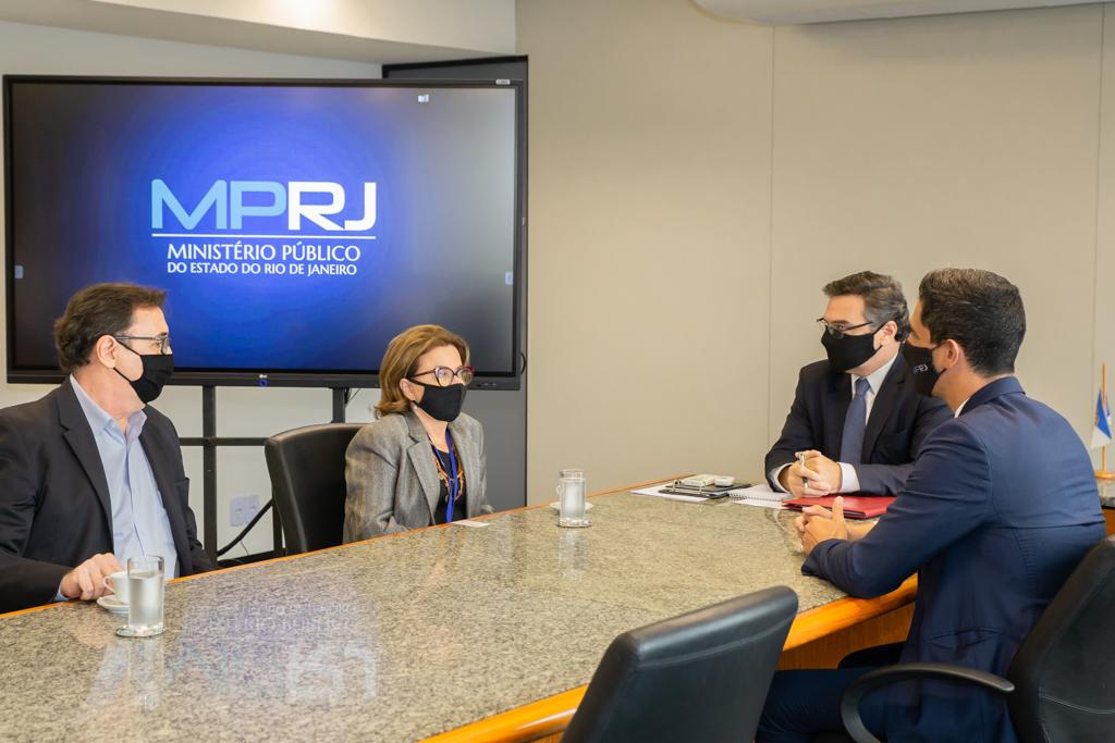 O Ministério Público do Estado do Rio de Janeiro (MPRJ), por meio do procurador-geral de Justiça, Eduardo Gussem, assinou nesta quinta-feira (08/10) convênio de cooperação com o Instituto Estadual do Ambiente (INEA) para promover e apoiar ações conjuntas para a implantação de projetos de Soluções baseadas na Natureza (SbN), visando garantir a segurança hídrica na Região Hidrográfica da Baía de Guanabara. O convênio foi assinado pelo PGJ; pelo coordenador do Grupo de Atuação Especializada em Meio Ambiente (GAEMA/MPRJ), promotor de Justiça José Alexandre Maximino; pela subsecretária de Estado de Recursos Hídricos e Sustentabilidade e presidente interina do INEA, Diane Mara Ferreira Varanda Rangel; e pelo diretor de Biodiversidade, Áreas Protegidas e Ecossistemas do Instituto, João Eustáquio Nacif Xavier.