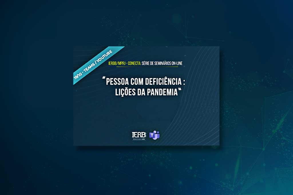 O Ministério Público do Estado do Rio de Janeiro (MPRJ), por meio do Instituto de Educação Roberto Bernardes Barroso (IERBB/MPRJ), realizou, na segunda-feira (19/10), mais uma edição do IERBB/MPRJ Conecta com o tema “Pessoa com deficiência: lições da pandemia”. A abertura contou com a presença da promotora de Justiça e subcoordenadora do Centro de Apoio Operacional das Promotorias de Justiça de Proteção ao Idoso e à Pessoa com Deficiência (CAO Idoso e Pessoa com Deficiência/MPRJ), Renata Scharfstein, e do esportista paralímpico brasileiro, dirigente esportivo e analista de sistemas Sandro Laina Soares.