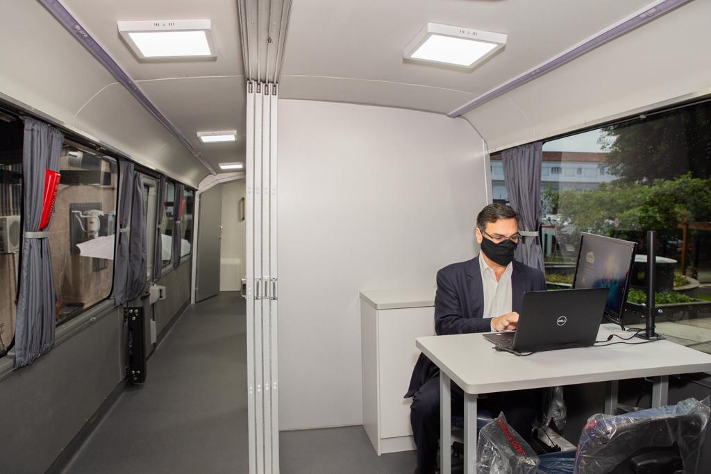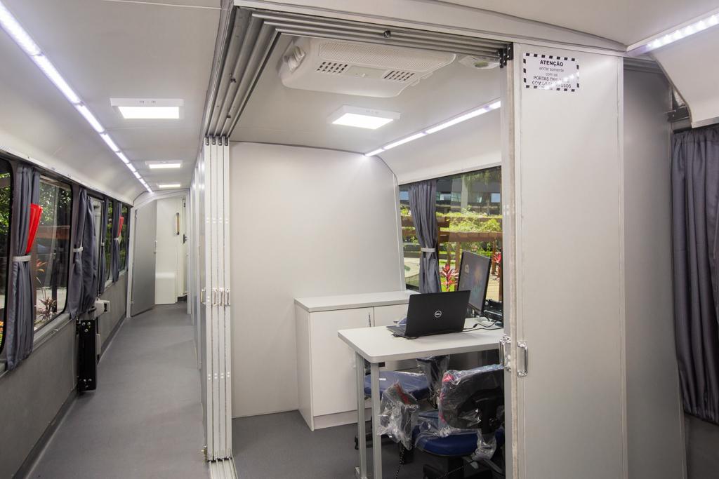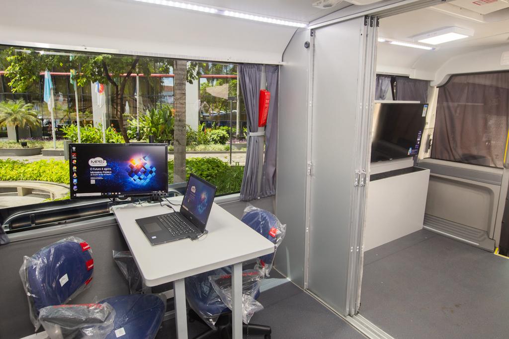 O novo ônibus institucional foi fabricado em 2020 e tem amplas condições de figurar como uma sede temporária do MPRJ em qualquer localidade do estado do Rio de Janeiro, pois conta com 3 (três) gabinetes totalmente mobiliados, espaço para reuniões, copa completa, banheiro, área de recepção, rede interna de computadores, iluminação em LED, climatização e gerador independente de energia, além de possuir características rodoviárias, permitindo, assim, maior autonomia para percorrer grandes distâncias com mais conforto e segurança aos usuários.