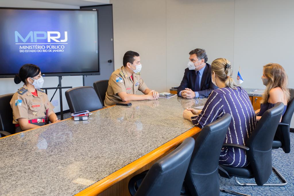 Participaram da reunião a coordenadora da Coordenadoria de Segurança e Inteligência (CSI/MPRJ), promotora de Justiça Elisa Fraga; a assessora executiva do MPRJ, procuradora de Justiça Mária Luiza Bezerra Cortes Barroso Miranda; e a ajudante de obras do comandante-geral do CBMRJ, major Mariana Antunes.