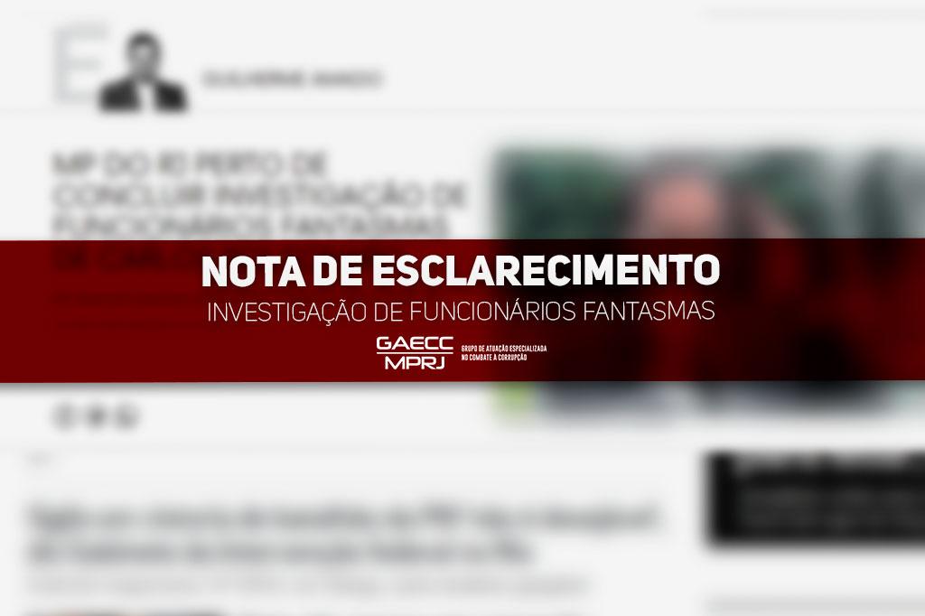 Em relação à nota veiculada no site da Época, "MP do RJ perto de concluir investigação de funcionários fantasmas de Carlos Bolsonaro", o Grupo de Atuação Especializada no Combate à Corrupção (GAECC/MPRJ) esclarece não ser verídico o conteúdo publicado, o que gera desinformação aos leitores. As investigações do caso tramitam sob sigilo.
