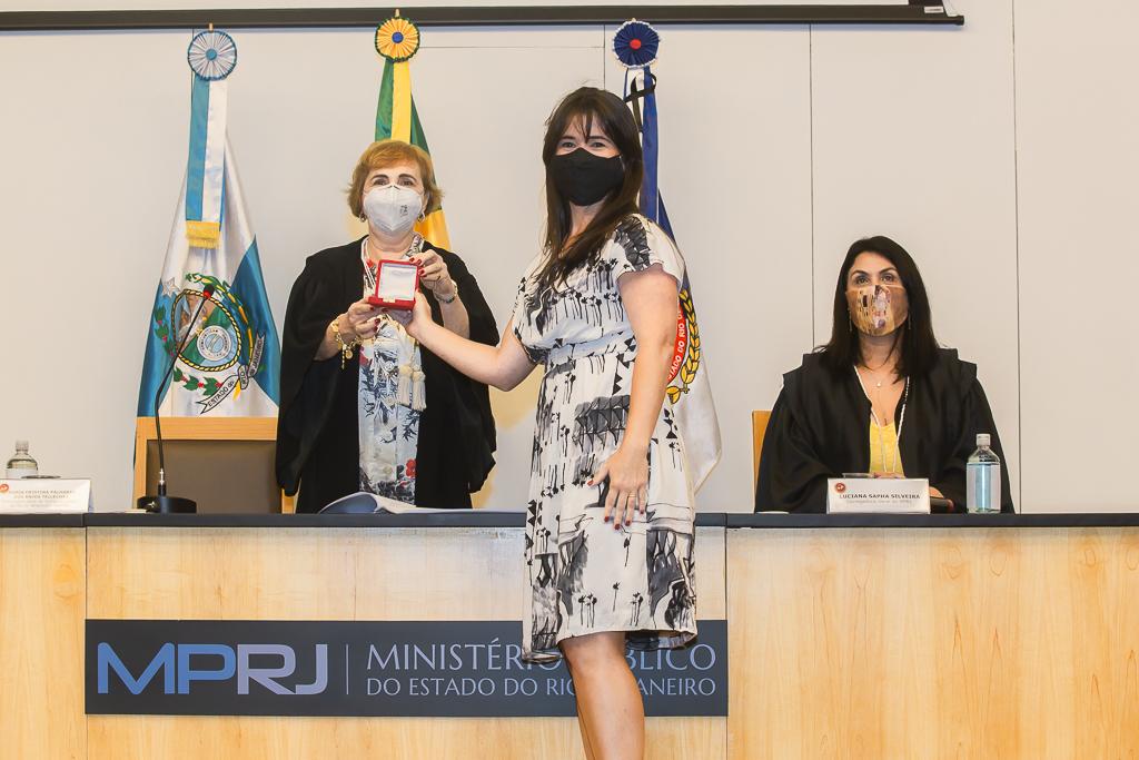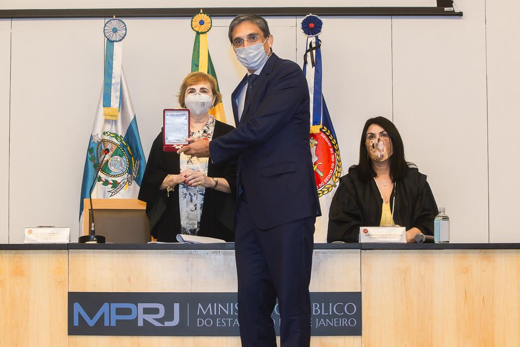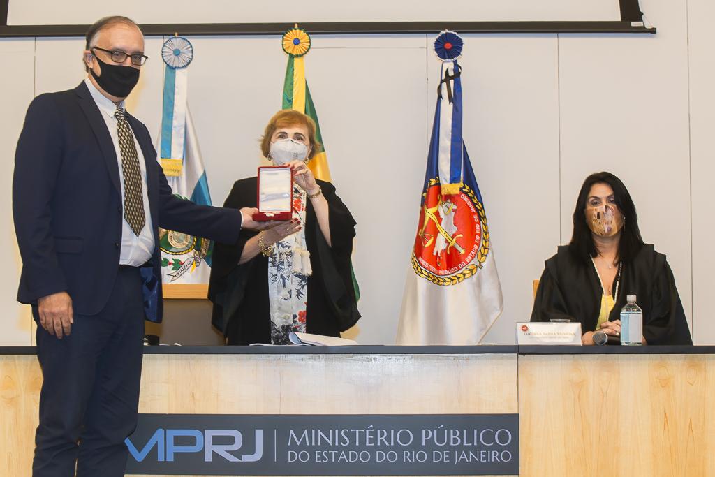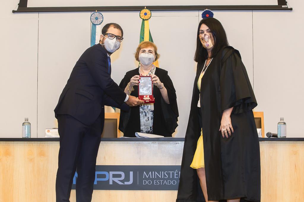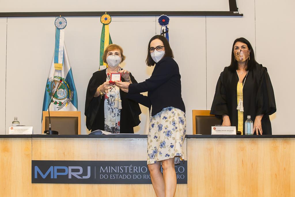 PGJ em exercício, Maria Cristina Tellechea destacou a importância do trabalho desenvolvido pelos agraciados. “A entrega do Colar e da Medalha simboliza a grandeza indissociável à atuação dos que hoje recebem as comendas. A pandemia nos colocou em uma situação antes impensável, tivemos perdas irreparáveis e os mais complexos desafios pela frente durante esse período. E essa situação foi enfrentada com inventividade, aprendizado coletivo e muito diálogo. Adotamos novas formas de trabalho e um olhar mais agudo sobre o papel do MPRJ, de articulação e coordenação entre estado e municípios, além de termos implementado a bem sucedida iniciativa da Força-Tarefa de Atuação Integrada na Fiscalização das Ações Estaduais e Municipais de Enfrentamento à Covid-19 (FTCOVID-19/MPRJ). Por isso, o MPRJ agradece a atuação dos agraciados com o Colar do Mérito e com a Medalha Annibal Frederico de Souza e renova seu compromisso constitucional e de confiança no futuro”, destacou a PGJ em exercício.