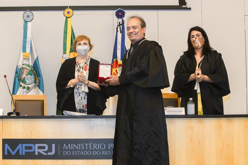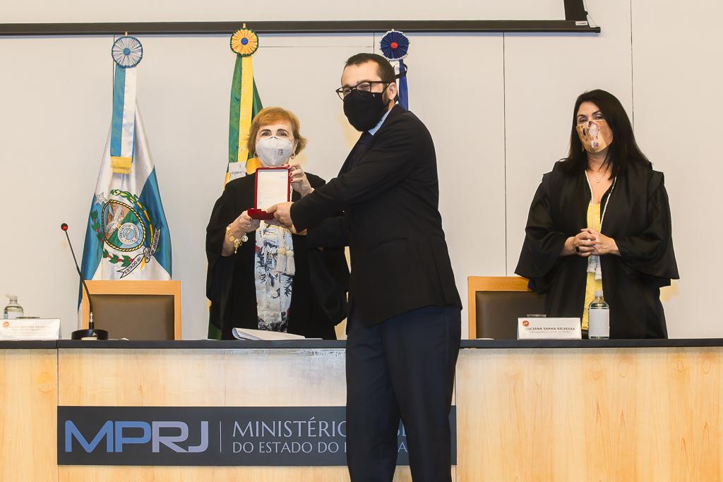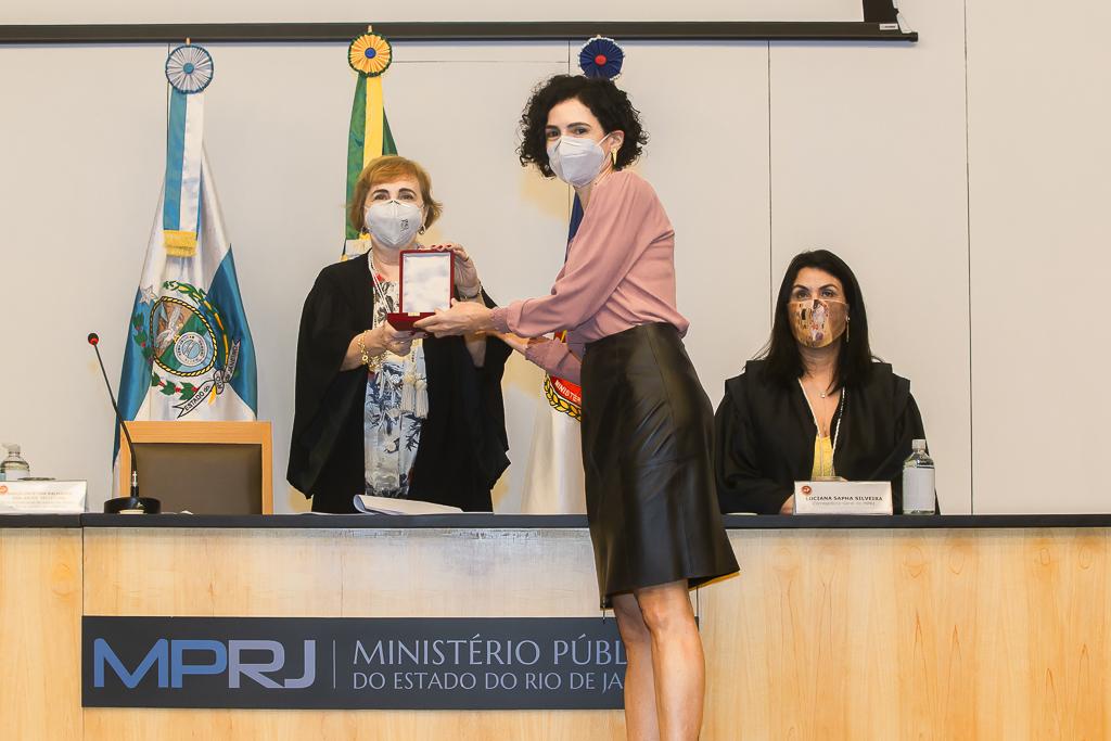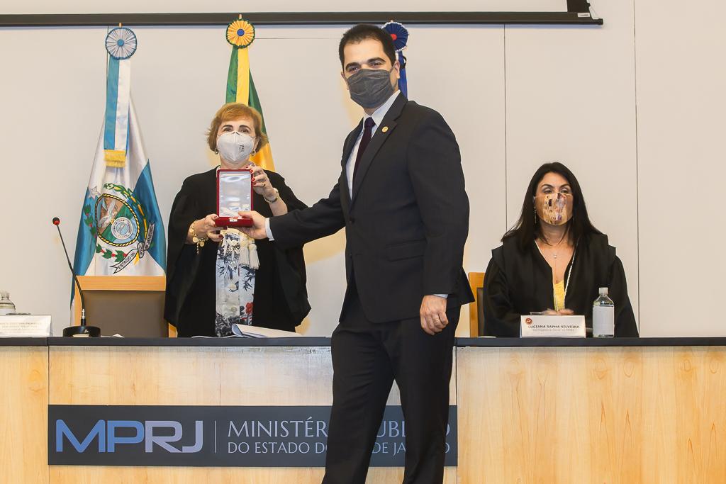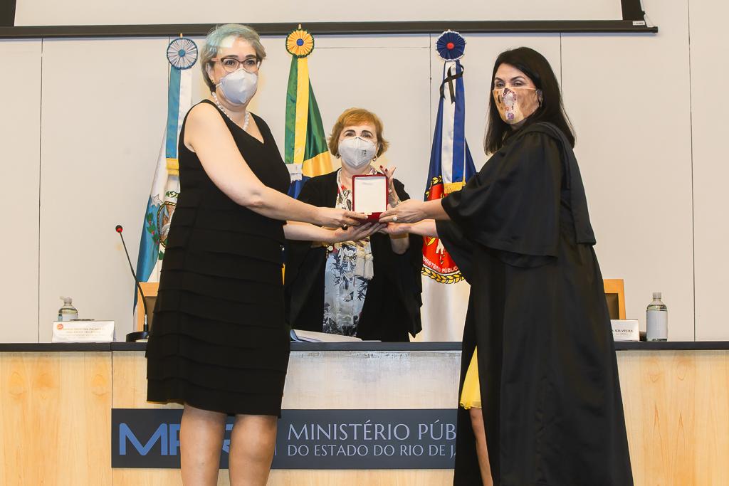 PGJ em exercício, Maria Cristina Tellechea destacou a importância do trabalho desenvolvido pelos agraciados. “A entrega do Colar e da Medalha simboliza a grandeza indissociável à atuação dos que hoje recebem as comendas. A pandemia nos colocou em uma situação antes impensável, tivemos perdas irreparáveis e os mais complexos desafios pela frente durante esse período. E essa situação foi enfrentada com inventividade, aprendizado coletivo e muito diálogo. Adotamos novas formas de trabalho e um olhar mais agudo sobre o papel do MPRJ, de articulação e coordenação entre estado e municípios, além de termos implementado a bem sucedida iniciativa da Força-Tarefa de Atuação Integrada na Fiscalização das Ações Estaduais e Municipais de Enfrentamento à Covid-19 (FTCOVID-19/MPRJ). Por isso, o MPRJ agradece a atuação dos agraciados com o Colar do Mérito e com a Medalha Annibal Frederico de Souza e renova seu compromisso constitucional e de confiança no futuro”, destacou a PGJ em exercício.