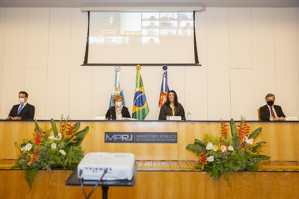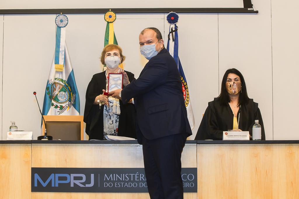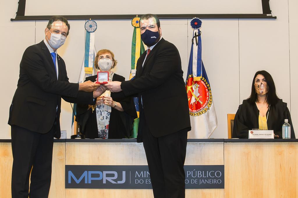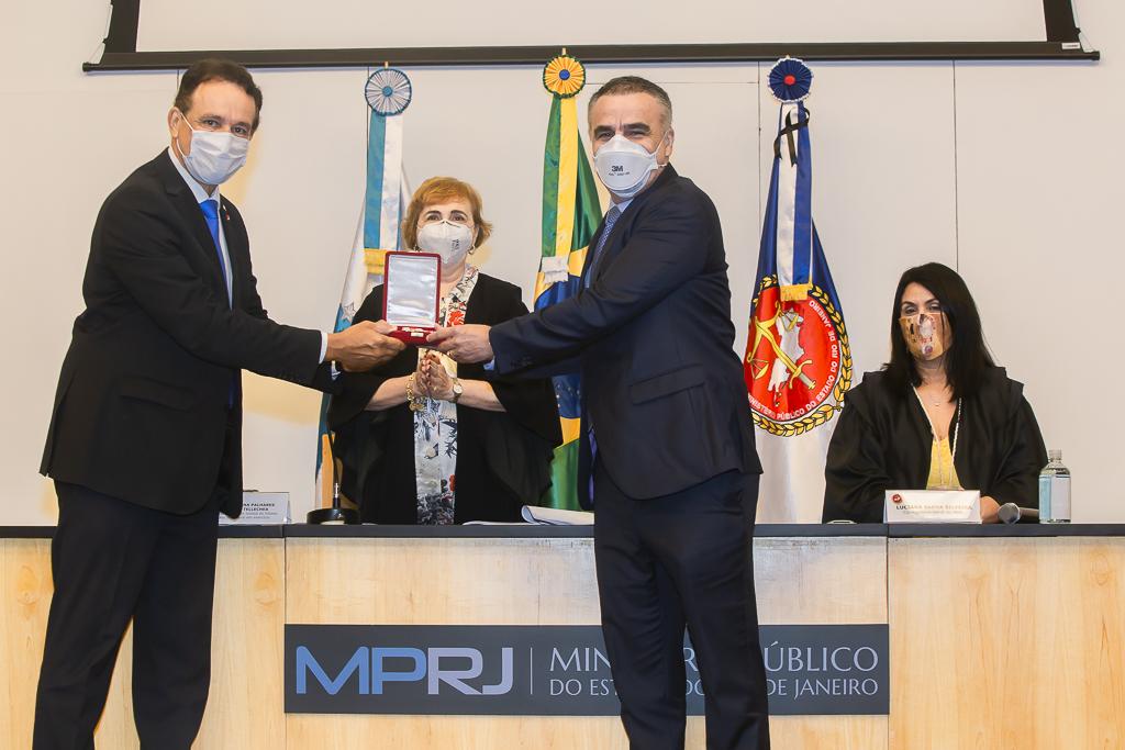 O Ministério Público do Estado do Rio de Janeiro (MPRJ) realizou, nesta sexta-feira (18/12), no auditório do edifício-sede, a 12ª sessão extraordinária do Órgão Especial do Colégio de Procuradores de Justiça, que homologou o resultado da eleição para a composição da lista tríplice para o cargo de Procurador-Geral de Justiça. Na ocasião, também foi realizada a sessão solene de entrega do Colar do Mérito do MPRJ e da Medalha Annibal Frederico de Souza, em homenagem ao Dia Nacional do Ministério Público, comemorado no último dia 14/12. Acatando recomendações médicas e sanitárias, os integrantes do Órgão Especial participaram da solenidade de maneira remota, enquanto o evento de entrega do Colar e da Medalha teve sua audiência restrita apenas aos agraciados, sendo transmitido ao vivo pelo portal do MPRJ na internet.