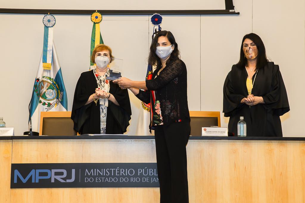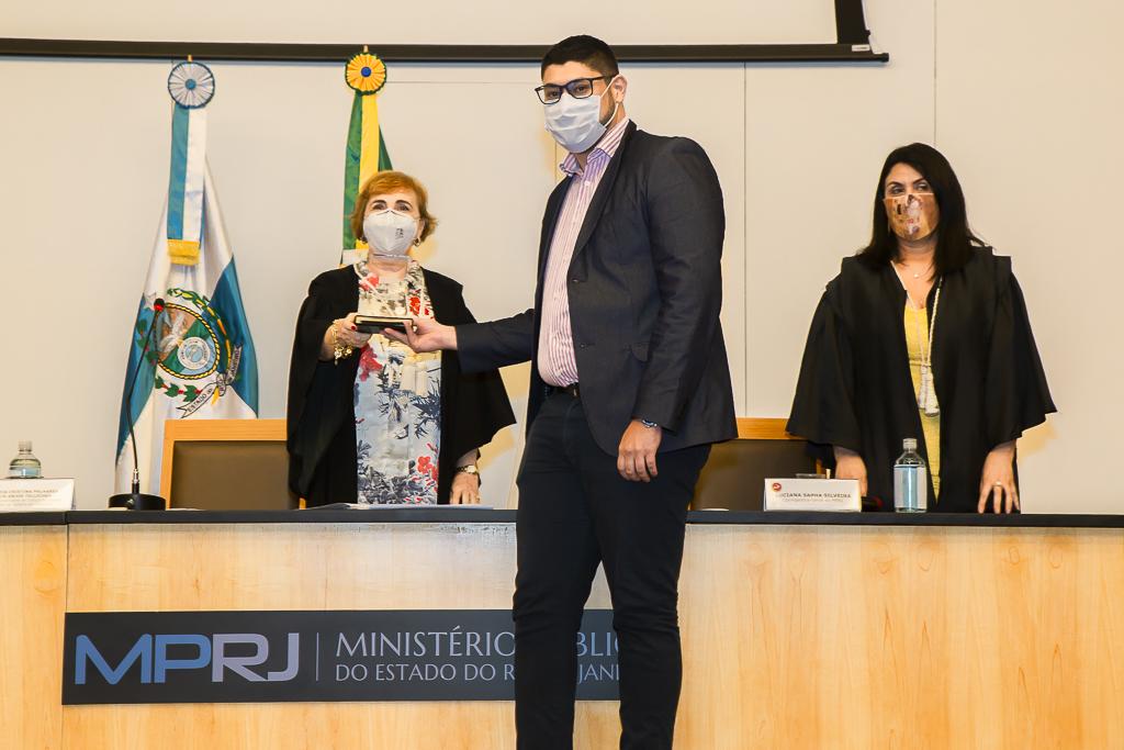 Por fim, foram anunciados os vencedores do prêmio MPRJ Ideias Inovadoras, que objetiva estimular novas práticas administrativas apresentadas por servidores para aprimorar as atividades institucionais. Em primeiro lugar, ficou o Programa de Padronização de Rotinas Administrativas, desenvolvido pelas Secretarias das Promotorias de Justiça do MPRJ em Teletrabalho, representadas pela servidora Ana Paula dos Santos. Em segundo lugar, ficou a proposta do aplicativo MPRJ ComVocê, desenvolvida pelo Grupo de Apoio Técnico Especializado (GATE/MPRJ) e pelo Núcleo de Saúde Ocupacional (NSO/MPRJ) e representada pelo servidor do NSO/MPRJ Sergio Rubens Soares Junior. E em terceiro lugar ficou o projeto Radar/MPRJ, desenvolvido pelo GATE/MPRJ e representado na cerimônia pelo servidor Michel Melli Carvalho.