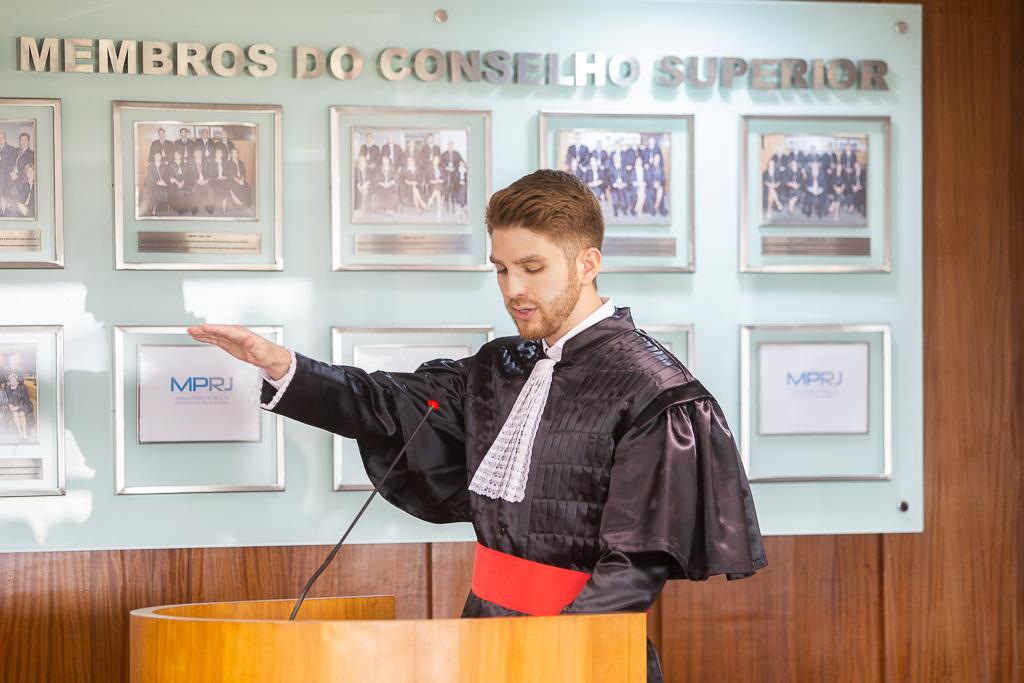 Novo integrante do MPRJ, Rafael agradeceu, em seu discurso de posse, aos pais, irmãos, namorada e amigos por incentivá-lo durante o processo de preparação para a prova de ingresso. “É uma honra estar ingressando hoje nessa instituição e gostaria muito de agradecer ao PGJ, à corregedora-geral, aos integrantes do Conselho Superior, à Comissão responsável pela realização do concurso e aos servidores que trabalharam para que, apesar da pandemia, pudéssemos todos ser empossados dentro do prazo. Foi uma caminhada recompensadora e assumo o compromisso de atuar com a diligência e a eficiência necessárias pra combater males como a corrupção e o crime organizado “, disse o promotor de Justiça substituto.