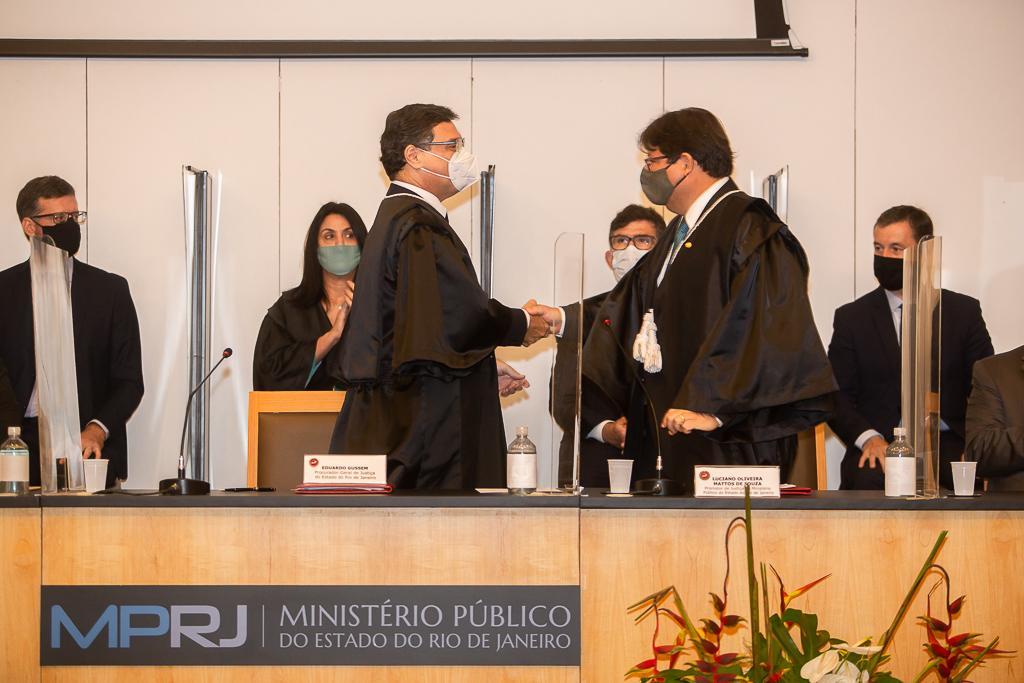 Ao transmitir o cargo ao seu sucessor, Gussem ressaltou o papel desempenhado durante os dois mandatos em que ocupou o cargo. “Quando assumimos, em 2017, demos continuidade ao trabalho desenvolvido pelo meu antecessor, o ilustre doutor Marfan Martins Vieira, investindo fortemente em inovação, transparência e resolutividade. E, apesar dos imensos desafios enfrentados durante esse período, como a intervenção federal na segurança pública do Estado, a implantação do Regime de Recuperação Fiscal e a pandemia que nos acomete atualmente, honramos o compromisso de servir à sociedade fluminense por meio de uma atuação técnica e reservada, implementando uma cultura de inovação, governança e compliance dentro da instituição”, disse. Após o seu discurso, Gussem recebeu uma moção de reconhecimento pela excelência de sua gestão das mãos da decana do Órgão Especial do Colégio de Procuradores de Justiça, Maria Cristina dos Anjos Tellechea.